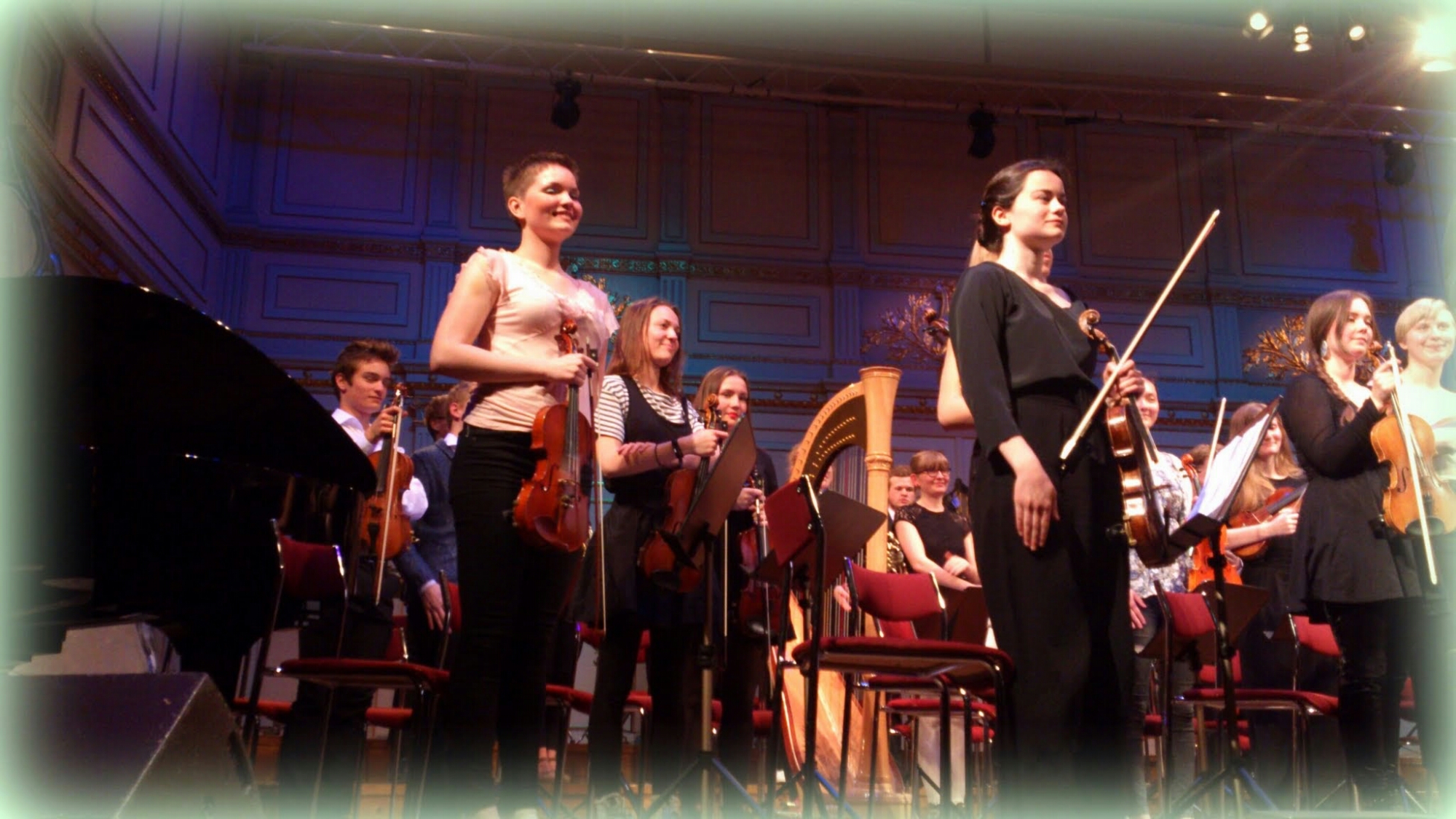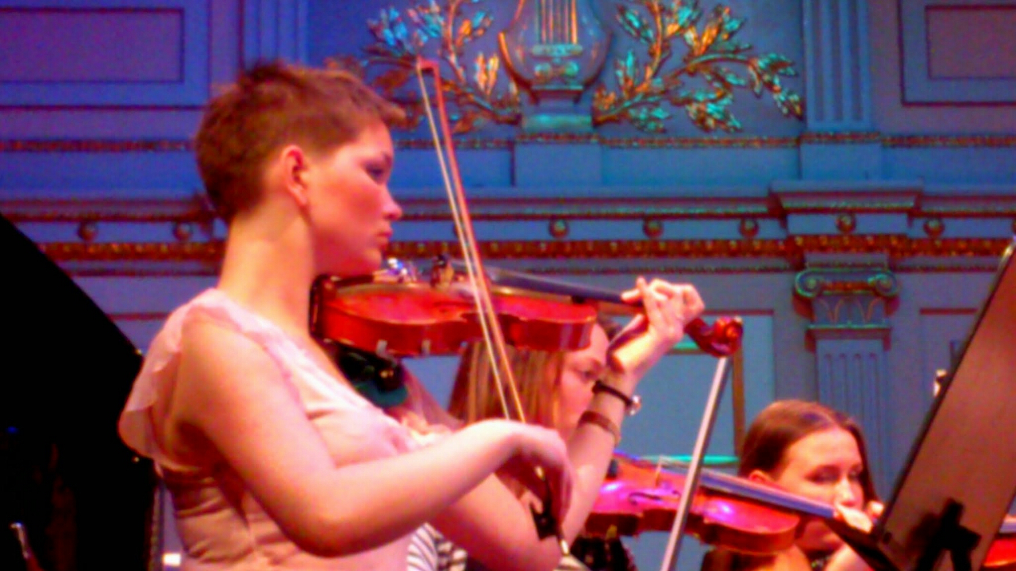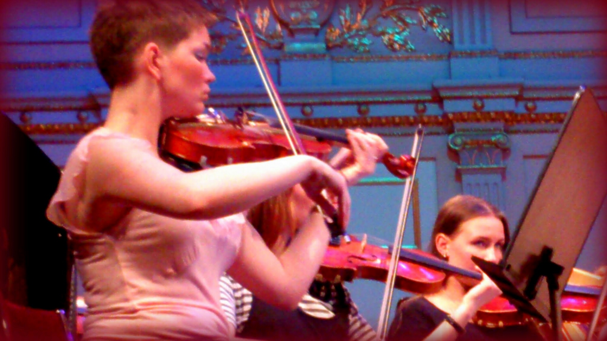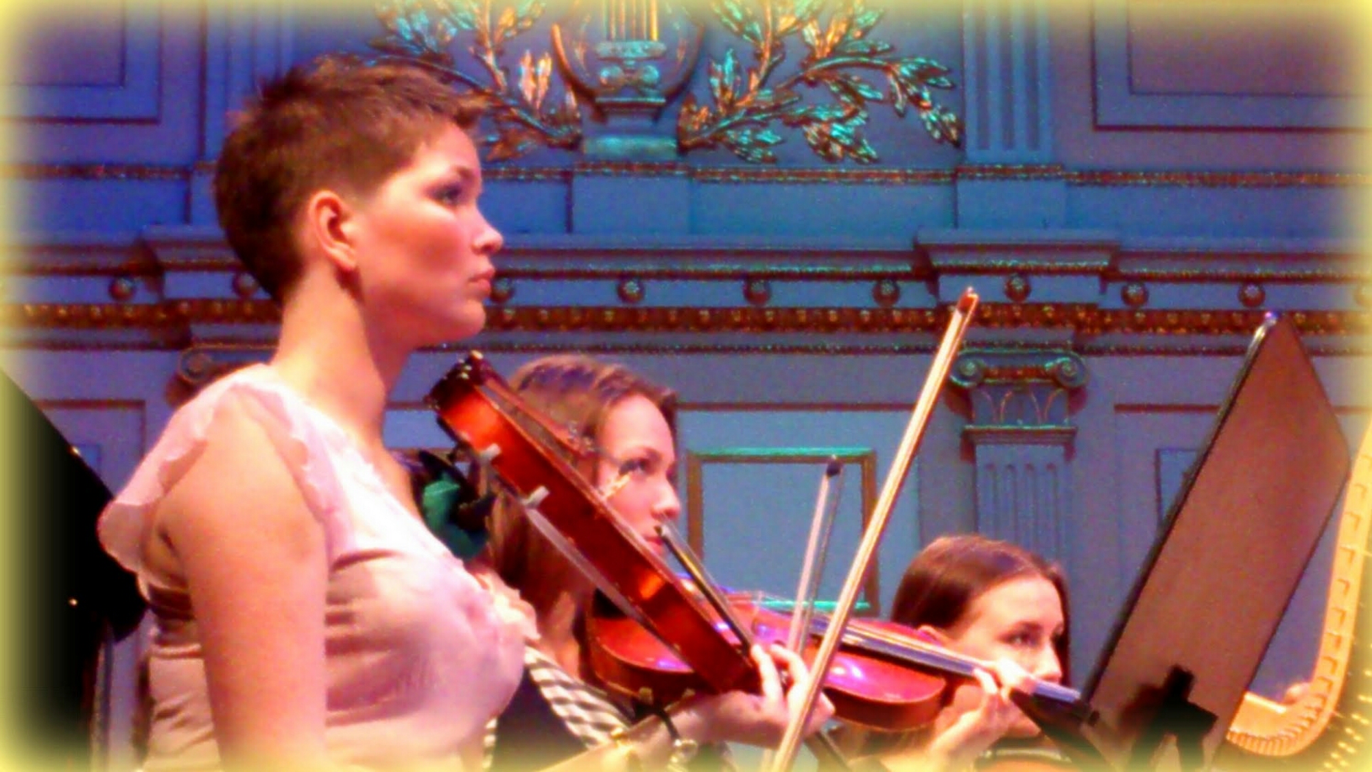 Mycket fin violinist, men inte solo. Säkert elev på akademin. Tyckte hon var representativ för orkestern. Ung, seriös, bra utseende..