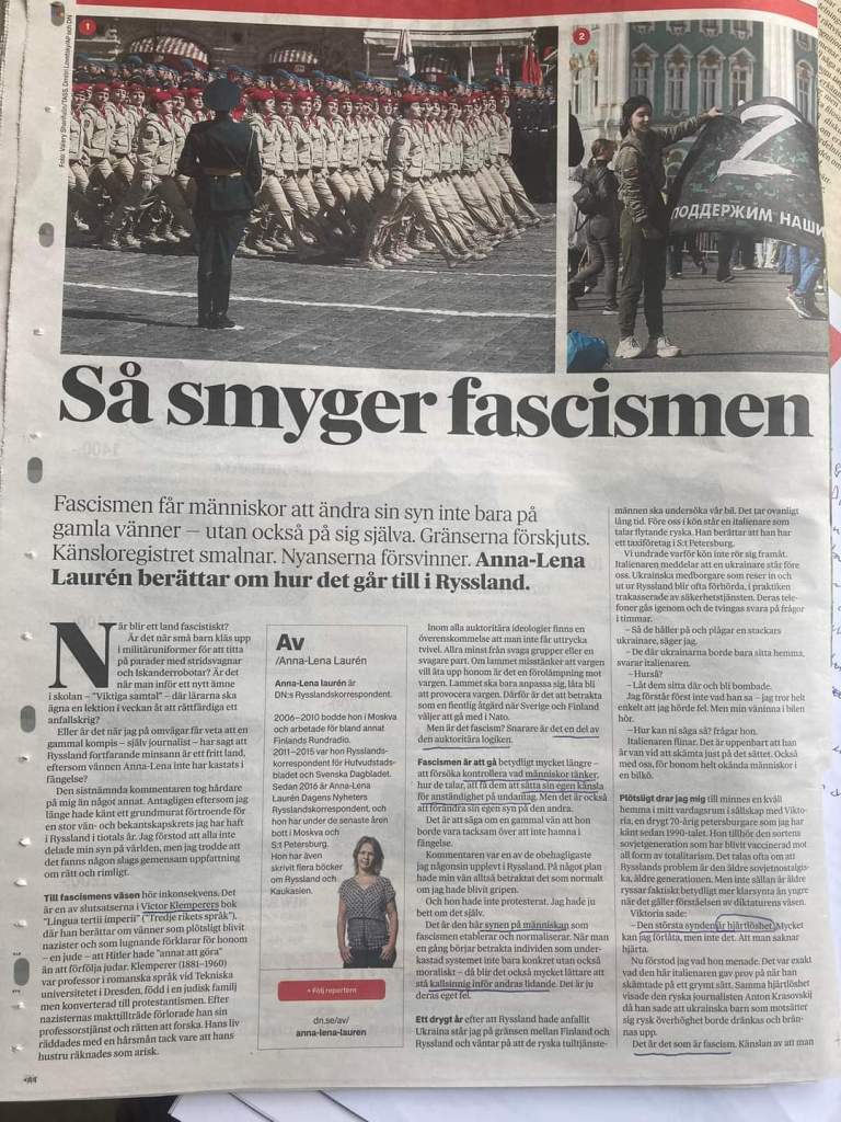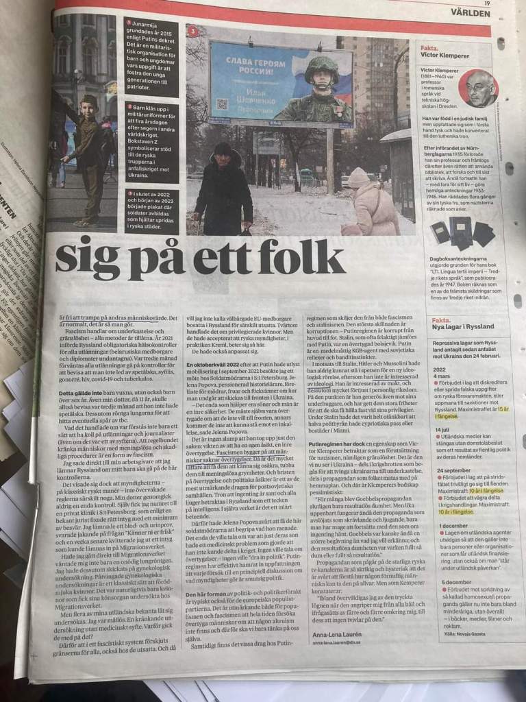 Anna-Lena tycks också sakna insikten att krig alltid alstrar grymhet, konformitet, rädsla, auktoritära lagar – vilket avspeglas inte bara i Ryssland, Ukraina utan nu också i svensk lagstiftning, brist på oppositionell publicering och fredinriktad politik!