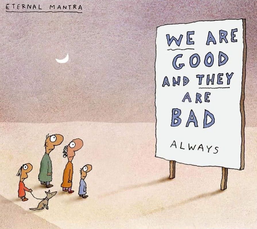 Trots det talar man om ”fienden” som om de inte vore fullt ut mänskliga som ”vi själva”.