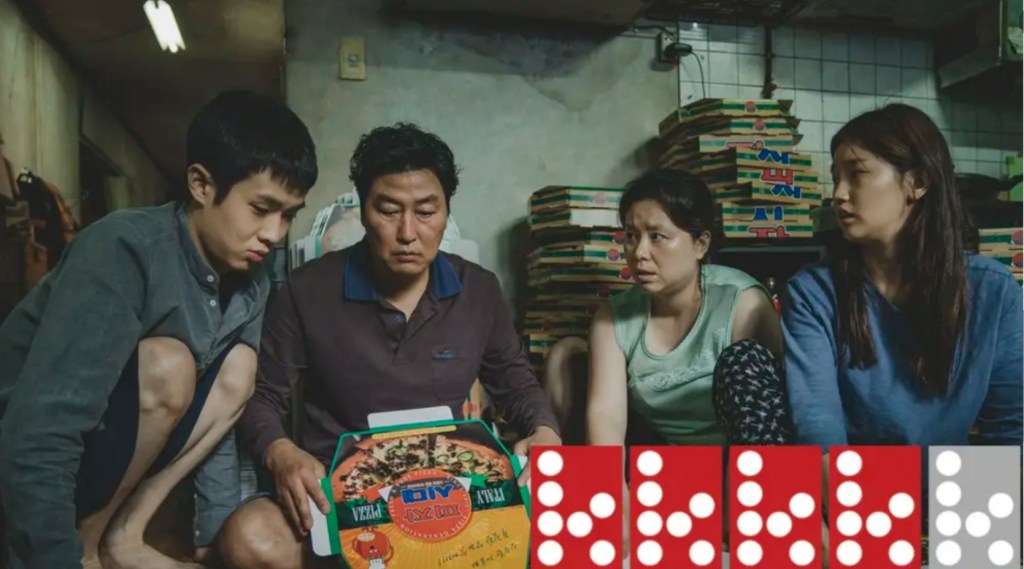Familjen Kim bor en källare i en trång lägenhet med fönster ut mot den gränd där berusade medmänniskor urinerar. De försörjer sig på att vika pizzakartonger. Socialt sett är de losers, lägst ner i ett samhälle med klasskillnader av en art som ärvts från feodaltiden.